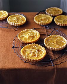 3.Preheat oven to 450 degrees. with rack in lower third. Add eggs to lemon mixture, and stir to combine. Pour through a fine sieve into a medium bowl. Divide liquid among tart shells, then top with the lemon slices, arranging decoratively.