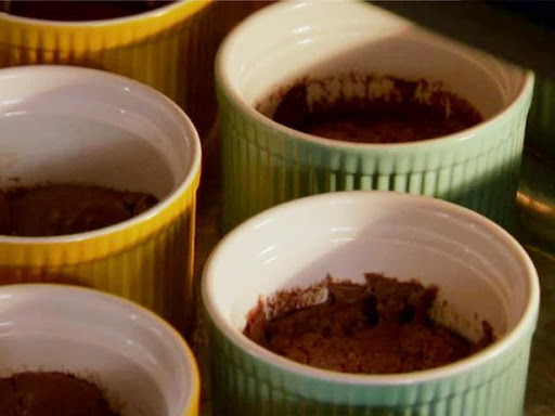 Pour the batter into 4 large ramekins. Set the ramekins into a larger pan halfway full of water.