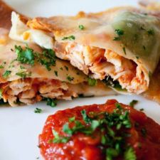 Spread about 1/6th of the chicken mix onto each flour tortilla, leaving about an inch all the way around. Roll tightly.