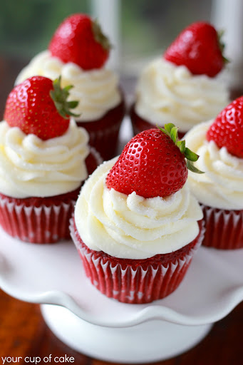 7. Pipe onto cooled cupcakes and top with strawberries.