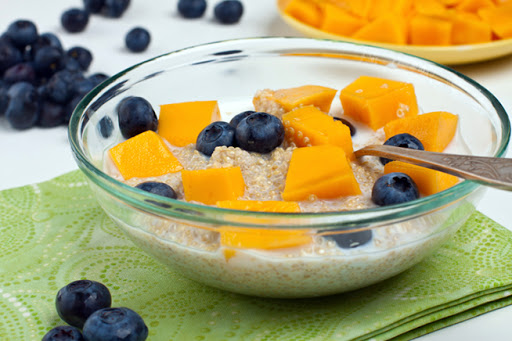 4.) Let quinoa, almond milk and fruit simmer for 3 to 5 more minutes, stirring occasionally.
