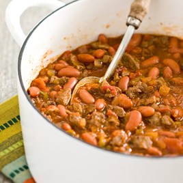 Before using blade steaks, trim and discard their interior line of gristle. Serve with cornbread or tortilla chips.