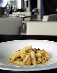 3. In a large, deep skillet, heat the olive oil. Add the pancetta and ¾ teaspoon black pepper and cook over medium heat, stirring occasionally, until crisp, about 5 minutes. Add the pasta and cooking water to the skillet and toss over medium heat until coated. Remove the skillet from the heat.