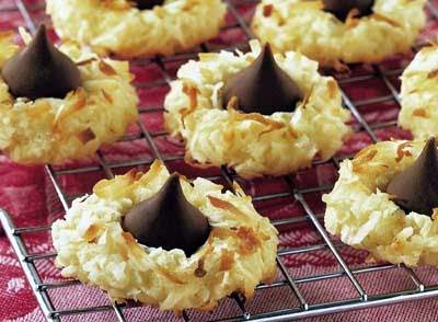 2. 2 Cover; refrigerate 1 hour or until firm enough to handle. Remove wrappers from chocolates. Heat oven to 350°F. Shape dough into 1-inch balls; roll balls in remaining 2 cups coconut. Place on ungreased cookie sheet.
