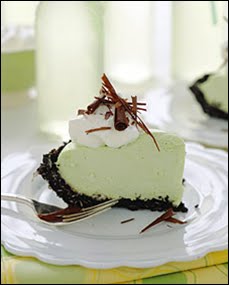 3. Prepare an ice-water bath; set aside. Put creme de menthe in a medium heatproof bowl, and sprinkle with gelatin. Let stand 5 minutes to soften. Whisk together egg yolks and remaining 1/4 cup sugar in another medium bowl; set aside. Add steeped cream to gelatin mixture, whisking until well combined.