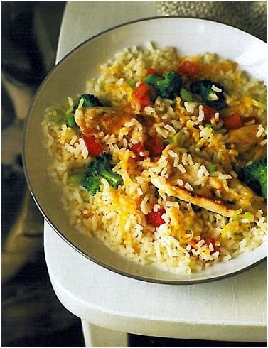 2. Stir in rice, broth and broccoli. Bring to boil; cover. Reduce heat to low; simmer 5 min. or until chicken is cooked through and rice is tender. Let stand, covered, 5 min or until liquid is absorbed.