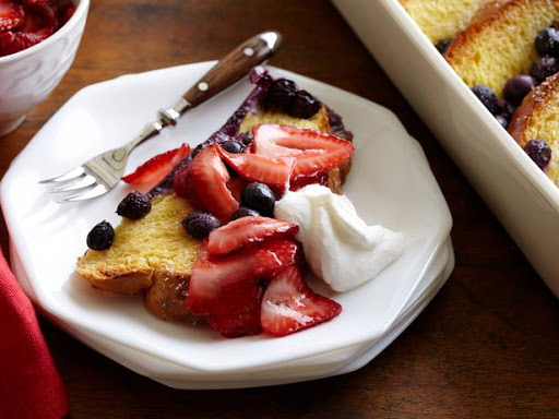 Blueberry French Toast Casserole with Whipped Cream and Strawberries