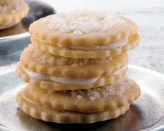 2. Spread lemon filling on un-sugared cookies and then sandwich them together with the sugared cookies.