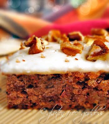 Preheat oven to 350 degrees. Coat 2 (9 inch) round cake pans with cooking spray. Combine flour, baking powder, cinnamon, salt, ginger and soda, reserve. At medium-high speed, beat butter and brown sugar until creamy, 3 to 4 minutes.