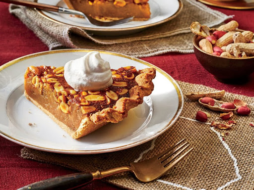Georgia Peanut Pie with Peanut Butter Crust and Brown Sugar-Bourbon Whipped