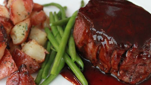 Remove steaks to two warmed plates, spoon one tablespoon of glaze over each, and serve immediately.