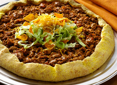 4. Bake 22 to 25 minutes or until crust is golden brown. Remove from oven. Top with remaining 1/2 cup cheese, lettuce and tortilla chips.