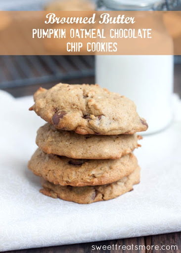Browned Butter Pumpkin Oatmeal Chocolate Chip Cookies