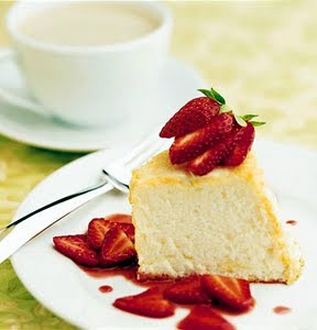 4. Gently fold in vanilla. Sprinkle flour-sugar mixture, ¼ c. at a time, over meringue folding in gently just until flour sugar mixture disappears.