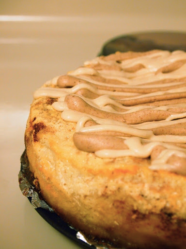 12) Before serving, cream together 3 tbsp butter with lemon juice, vanilla, and 1 cup powdered sugar in one bowl. In another bowl, cream 3 tbsp butter, cinnamon, brown sugar, and 1/2 cup powder sugar. Drizzle both over cake, then enjoy!