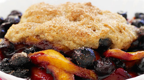 Peach Blueberry Cream Cheese Cobbler
