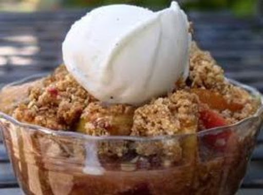 Spread topping ingredients evenly over the peaches and bake at 350 degrees for 30-40 minutes or until peaches are bubbling through and the topping is starting to brown. Remove from oven and cool for 15 minutes or more before serving.
