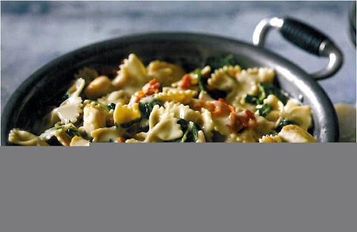 Chunks of chicken and pasta are studded with spinach and sundried tomatoes, which makes this dish full of flavour and easy enough for a weeknight meal.