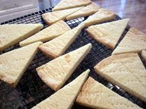 7) Using a pizza wheel or sharp knife, cut each round into 12 wedges. (Do this while the shortbread is still warm; if you wait until it's cool, it won't cut easily.) Transfer the shortbread wedges to a rack to cool.