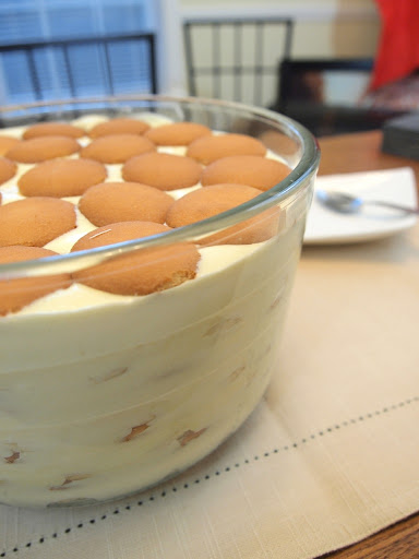 12. Add cream cheese-pudding mixture on top of bananas, about 1.5 cups.