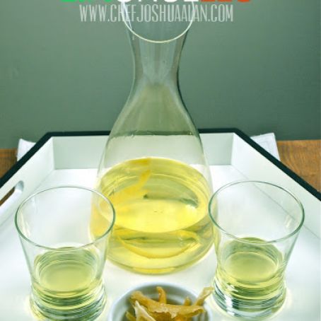 8. Cool syrup, then pour over vodka and lemon peels. Let it sit at room temperature over night.