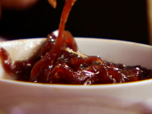 In a separate small pan, heat the honey until it begins to bubble and froth. Cook until the honey turns a light caramel color, an additional 2 to 3 minutes. Add the red wine vinegar, simmer for a few minutes on low heat, and then shut off the heat. Pour the honey mixture over the onions and continue cooking them over low heat until all of the juice is absorbed and the onions are a jam-like consistency, 10 to 15 minutes. add lemon juice and zest at this point. Taste for seasoning and transfer to a bowl to cool until ready to serve.