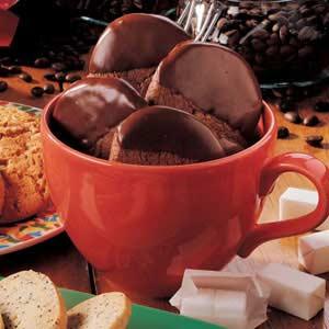 In a large bowl, cream butter, shortening and sugars until light and fluffy. Dissolve coffee in water; add to creamed mixture with egg and melted chocolate until blended. Combine the flour, cinnamon and salt; gradually add to creamed mixture and mix well (dough will be sticky). Shape into two 6-1/2-in. rolls; wrap each in plastic wrap. Refrigerate for 4 hours or until firm.