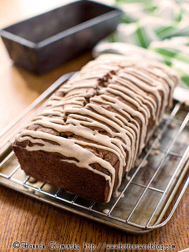 Pour the liquid mixture into the bowl of dry goods, and stir with a wide spatula just enough to bring the batter together. A few small lumps are far better than an overworked, tough cake. Pour the batter to your prepared pan and bake for 50 - 60 minutes, until amber brown all over an a toothpick inserted into the center pulls out cleanly. Let sit in the pan for about 5 minutes before transferring to a wire rack to cool completely.