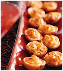 2. Halve the potatoes; using a melon baller or a teaspoon, scoop out most of the flesh into a bowl. Return the potato skins to the baking sheet. Coarsely mash the potato flesh in the bowl and stir in the cheese, sour cream, 1 teaspoon salt and the pepper. Sprinkle the insides of the skins with the remaining 1/2 teaspoon salt; stuff each with the potato-cheese mixture and sprinkle paprika on top.