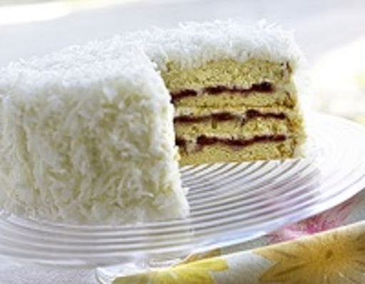 6.To assemble cake: Place a bottom cake layer on serving plate, cut side up. Carefully spread one third of jam over cake. (TIP: Warm the jam slightly, if needed, for easy spreading.) Sprinkle 2 to 3 tablespoons shredded coconut over jam. Next, spread a thin layer of icing over underside of next layer. Stack the two halves together like a sandwich (jam and icing touching in the middle). Repeat the filling and stacking process with remaining cake layers, jam, coconut and icing, ending with top layer. Spread the rest of the icing over the top and sides of the cake; cover with 2 cups shredded coconut. Refrigerate at least 2 hours or overnight for best flavor. Store cake in refrigerator until 15 minutes before serving.