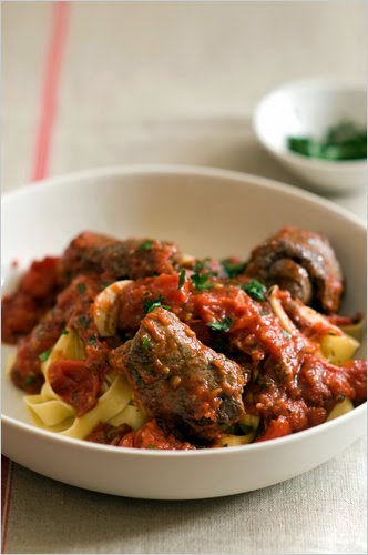 In another skillet, heat the remaining 2 tablespoons of olive oil over medium-high heat. Season meat rolls with salt and pepper. Working in batches, brown them all over, about 30 seconds per side; transfer to tomato sauce.