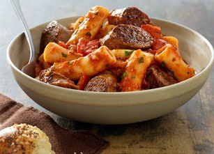 Meanwhile, cook rigatoni according to package directions; drain and set aside.
