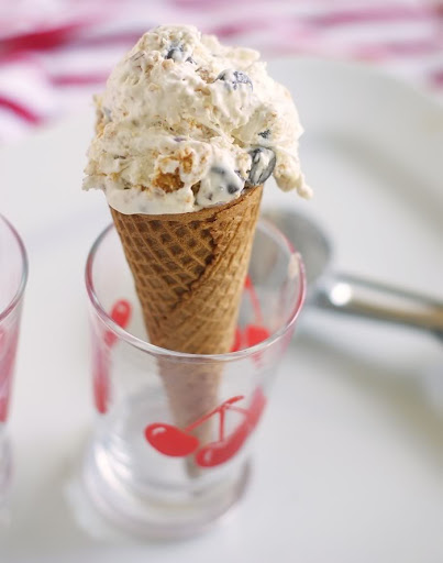 Scoop out the finished, soft ice cream into a freezer container, adding in bits of the graham cracker mixture, trying to keep some of it in chunks.