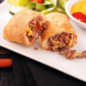 Flatten each biscuit into a 5-in. circle; spoon 1/3 cup beef mixture onto each biscuit.