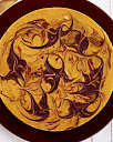 Pour three-fourths of the pumpkin cheesecake batter over the brownie crust. Pour the chocolate batter on top of the pumpkin cheesecake batter. If the chocolate batter is too thick to pour easily, heat it in a microwave oven on high for 10 seconds. Spoon the remaining pumpkin cheesecake batter on top of the chocolate batter. Use a table knife to make a few decorative swirls: Do not overswirl.