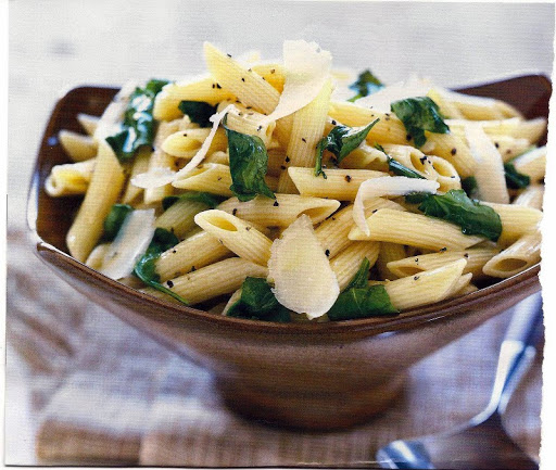 Fill large serving bowl with hot water to heat bowl; let stand while cooking pasta, Cook pasta in large pot of boiling salted water until just tender but still firm to bite, stirring occasionally, Drain pasta, reserving 1/2 cup pasta cooking liquid, Pour out hot water from serving bowl. Immediately add drained pasta and oil to bowl, then arugula and cheese and toss to coat, If dry, add some of reserved pasta cooking liquid by tablespoonfuls, Season with salt and freshly ground black pepper and serve,