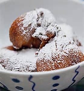 Scoop up egg size dolops of dough, push off into oil, fry in small batches until they float and turn golden brown (about 3 min.), flip them over to fry on the other side, remove and drain on paper towel.