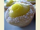 food processor pulse sugar, powdered sugar and butter till creamy. Can be done with electric beaters as well. 2 Mix rest of ingredients except lemon curd and sweetened condensed milk, mix until a smooth dough is formed. 3 Chill 15 minutes wrapped in plastic wrap. 4 Spray mini muffin tins with Pam. 5 Measure 1 Tbsp of dough. 6 Roll into ball place one in each hole of mini tart pan. 7 Using your thumb make a centre with the dough making sure that the dough in uniform size all around and not to thin on the top. 8 Bake at 350F for 9 minutes or until dough is slightly firm but not set. They may close up during cooking. 9 Remove tart shells from oven working quickly and using the back of a rounded 1/2 tsp measuring spoon gently press a shallow indentation in each shell. (Don't let them cool or it will be harder to get them to form a shell). 10 Bake 2-3 minutes longer or until edges of shells are firm and golden. 11 Let cool in the pan for 5 minutes. 12 Carefully remove from pan and transfer to cooling rack, if they need more shaping you can do that now. 13 Cool completely before filling. Can be made to this point and frozen (but thaw to room temp before filling). 14 For the filling mix together purchased or homemade lemon curd and sweetened condensed milk. 15 Put a small amount of powdered sugar in a sieve and shake a little on the top of each tart, garnish with a long piece of lemon zest.