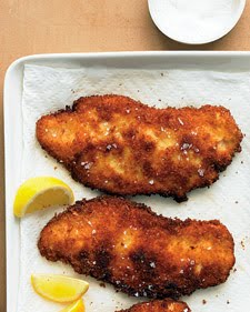 1. In a shallow dish, whisk eggs with teaspoon salt; let stand 5 minutes. In another shallow dish, season flour with 1/4 teaspoon salt. In a third shallow dish, season breadcrumbs with 1 teaspoon salt.