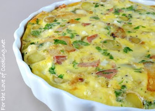 Caramelized Onion and Potato Frittata with Ham and Swiss