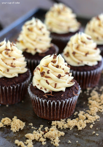8. Pipe onto cooled cupcakes and decorate with chocolate shavings or brown sugar.