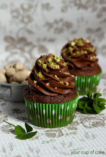 7. Pipe onto cooled cupcakes and top with crushed pistachios.