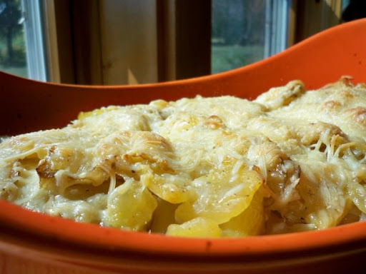 "Before ovens were part of every home in France people would drop their Sunday roast off at the local baker, surrounded by sliced onions and potatoes, on the way to church. On their way home they would pick up the cooked meal ready to enjoy! This is a slow cooker version. I'm sure you'll love this. If you love potatoes and onions how could you not? Recipe found in The 150 Best Slow Cooker Recipes. You can partially prepare this dish the night before. Complete the first 4 steps and refrigerate overnight. The next day you simply continue cooking as directed in step 5. This dish is even better if you use a really good homemade stock but commercial stock works well, too."