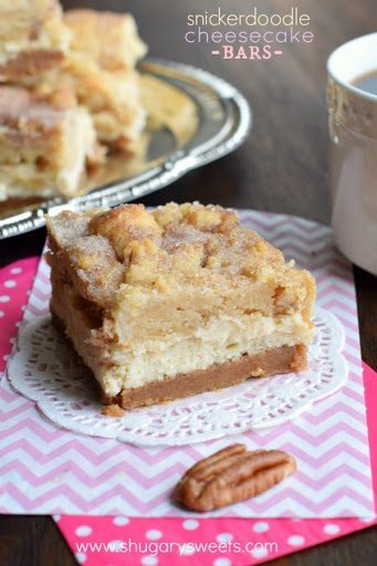 Delicious sweet and salty snickerdoodle cheesecake bars!
