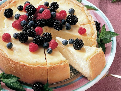 Run metal spatula along side of pan to loosen cheesecake again. Remove side of pan; leave cheesecake on pan bottom to serve.