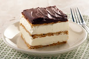Line 9x13 pan with full graham crackers. Put 1/2 pudding mixture on top of the crackers. Repeat with another layer of crackers and the other 1/2 of the pudding. Place another layer of crackers on top.