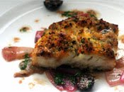 Serve immediately, with the some of the onions, olives and pan juices spooned alongside the fish.