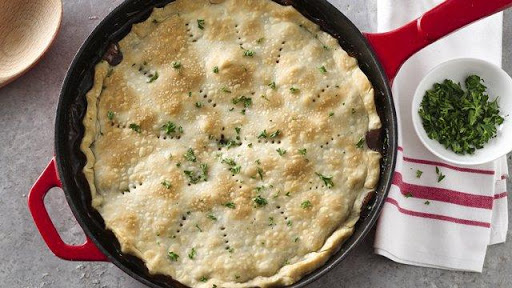 3 Unroll pie crust on work surface. Roll into 12-inch circle. If desired, flute edge. Prick with fork several times. Place pie crust on top of beef mixture in skillet.