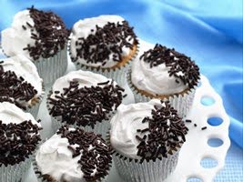 Pour hot syrup very slowly in thin stream into egg whites, beating constantly on medium speed. Add 2 teaspoons rum extract. Beat on high speed about 10 minutes or until stiff peaks form. Immediately spread frosting on cupcakes. Sprinkle with chocolate sprinkles. Store in refrigerator.