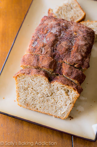 Remove the plastic wrap and sprinkle the top of the loaf with cinnamon and sugar.